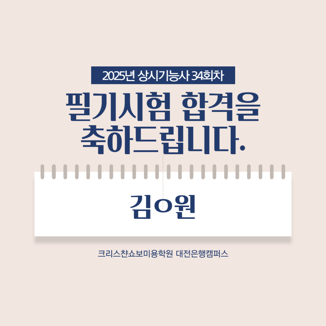 2025년 상시34회차 필기시험 합격을 축하드립니다.