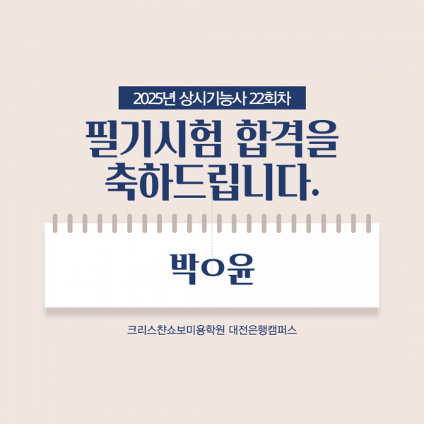 미용사(네일) 필기시험 합격을 축하드립니다.