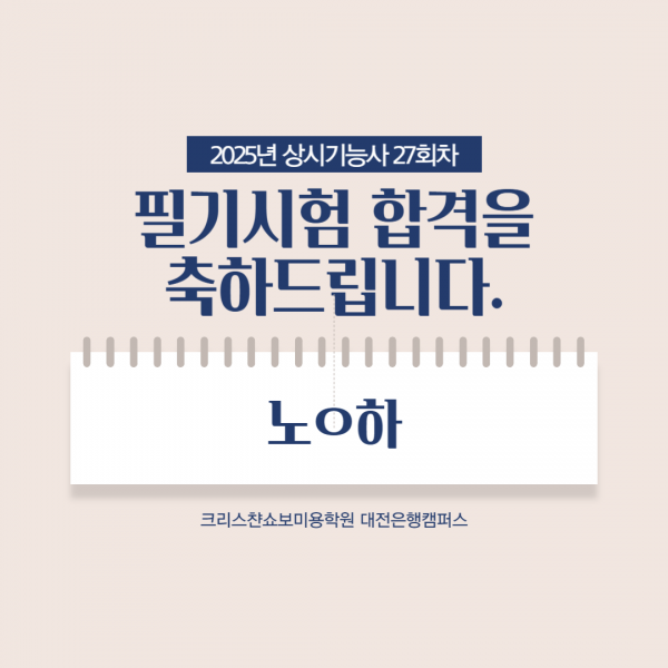 미용사(메이크업) 필기시험 합격을 축하드립니다.