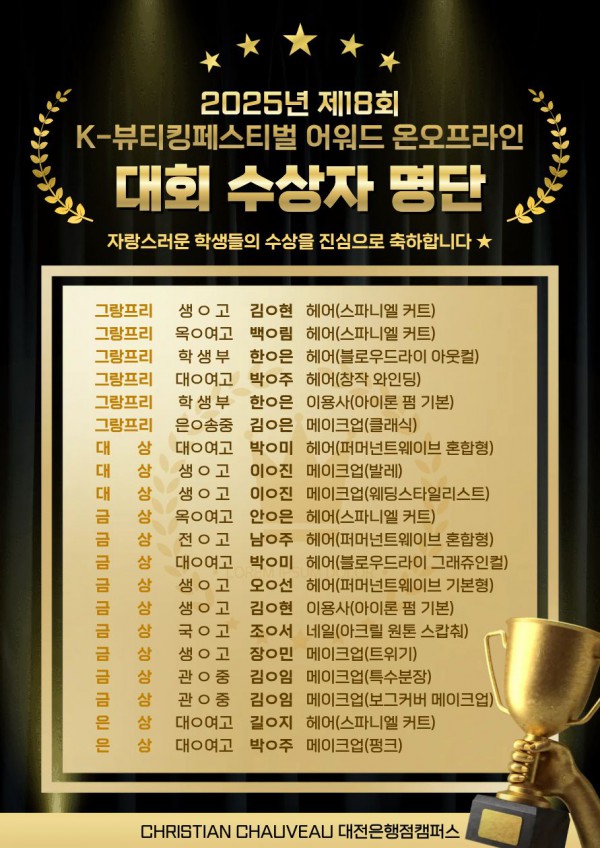 '제18회 K-뷰티킹페스티벌 온·오프라인 대회' 수상을 축하드립니다.