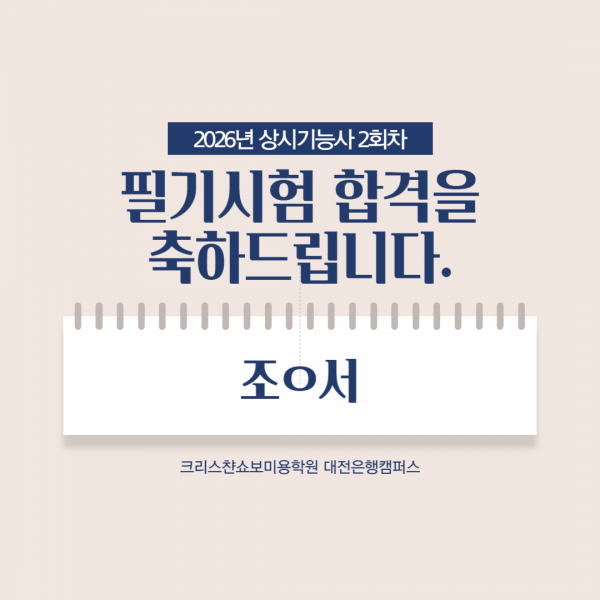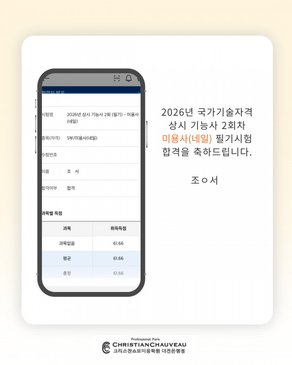 미용사(네일) 필기시험 합격을 축하드립니다.
