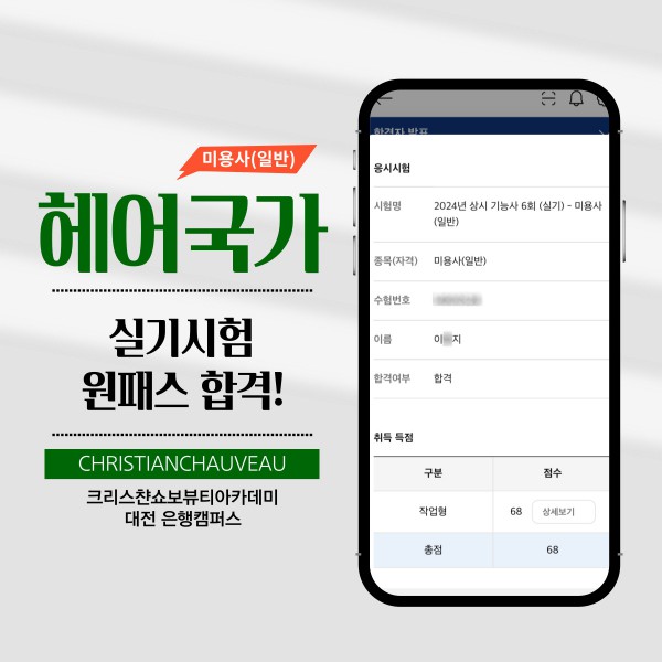 미용사(일반) 실기시험 합격을 축하드립니다.