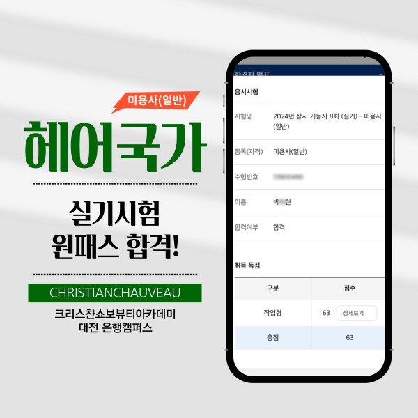 미용사(일반) 실기시험 합격을 축하드립니다.