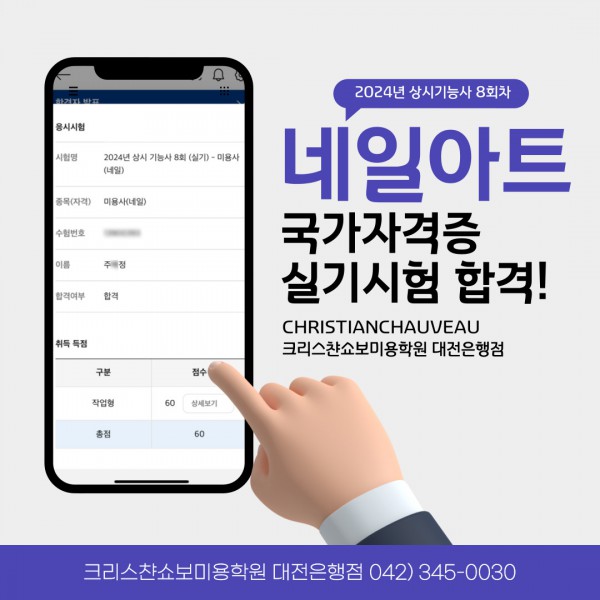 미용사(네일) 실기시험 합격을 축하드립니다.