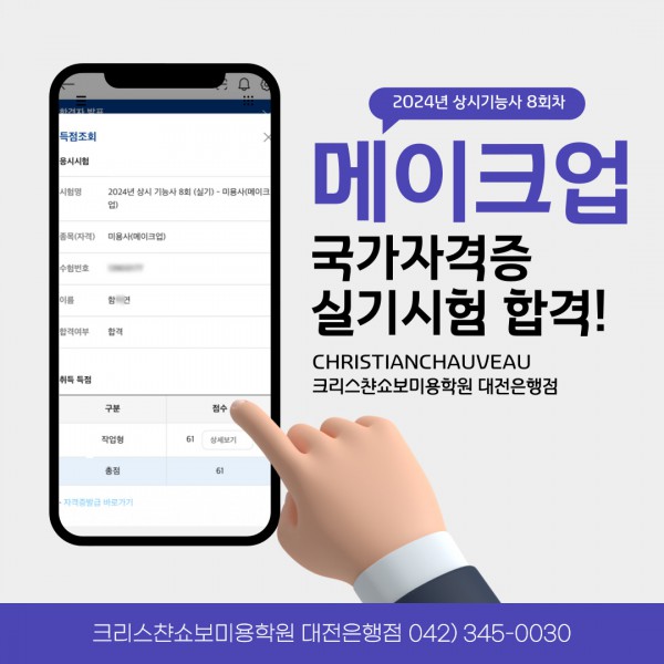 미용사(메이크업) 실기시험 합격을 축하드립니다.
