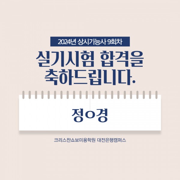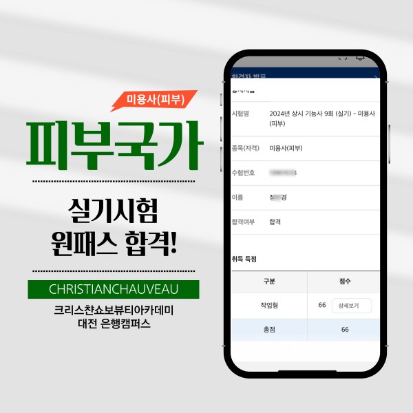 미용사(피부) 실기시험 합격을 축하드립니다.