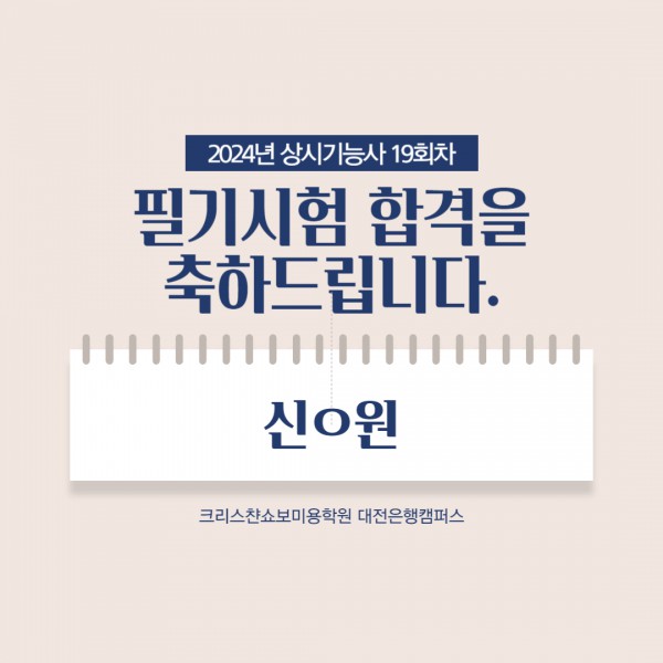 미용사(네일) 필기시험 합격을 축하드립니다.