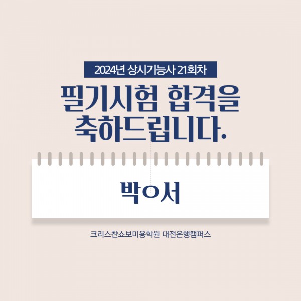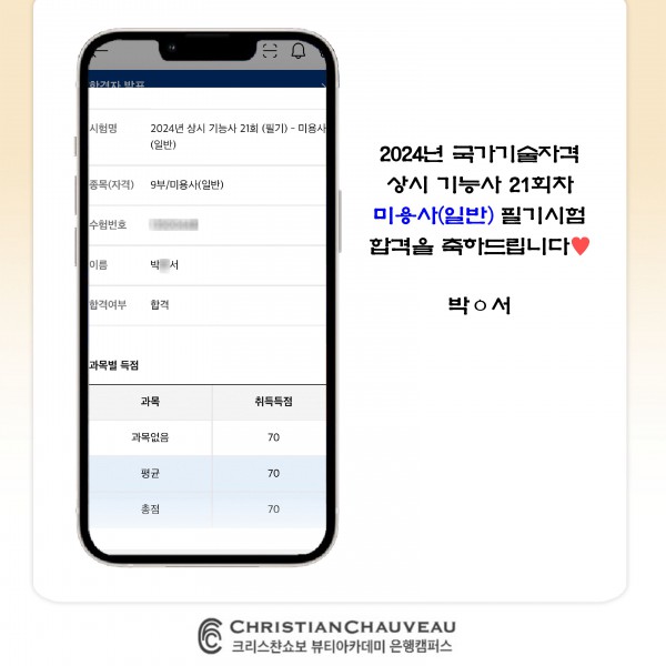 미용사(일반) 필기시험 합격을 축하드립니다.