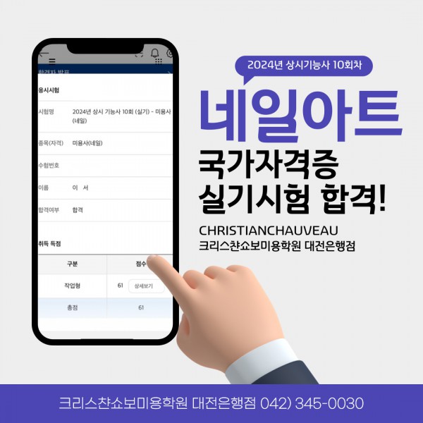 미용사(네일) 실기시험 합격을 축하드립니다.