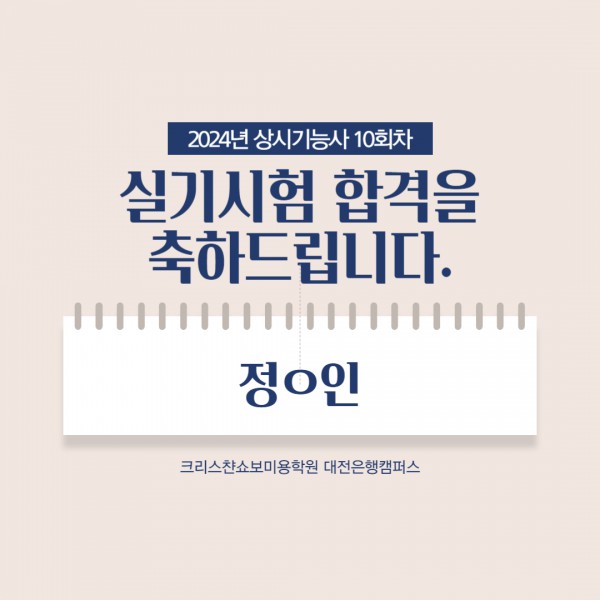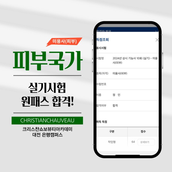 미용사(피부) 실기시험 합격을 축하드립니다.
