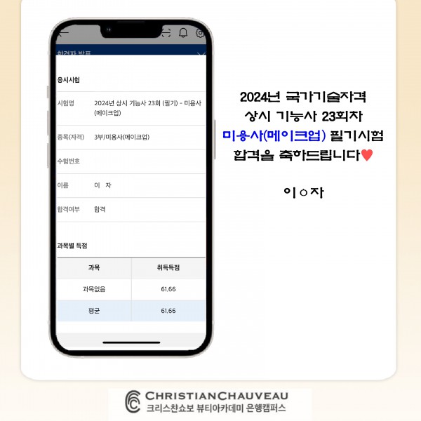미용사(메이크업) 필기시험 합격을 축하드립니다.