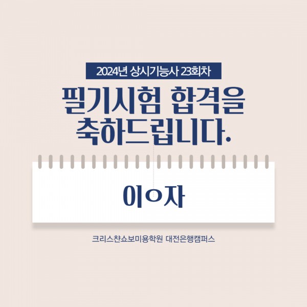 2024년 상시23회차 필기시험 합격을 축하드립니다.
