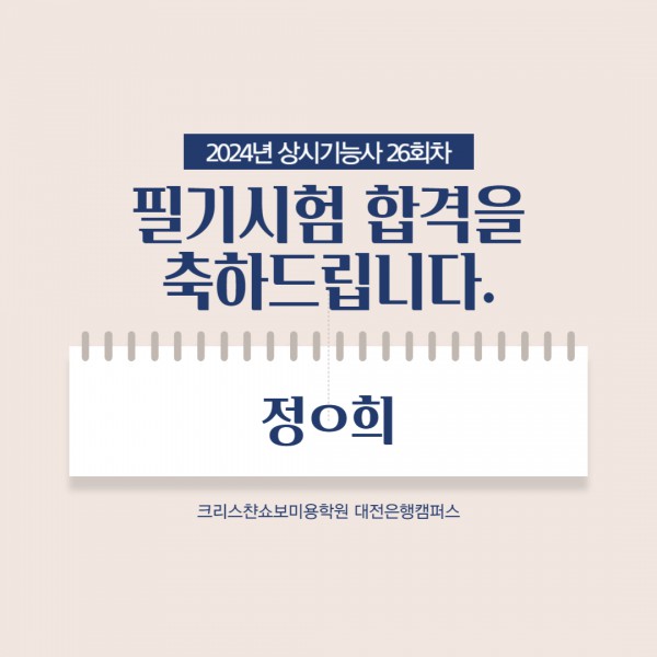 미용사(일반) 필기시험 합격을 축하드립니다.