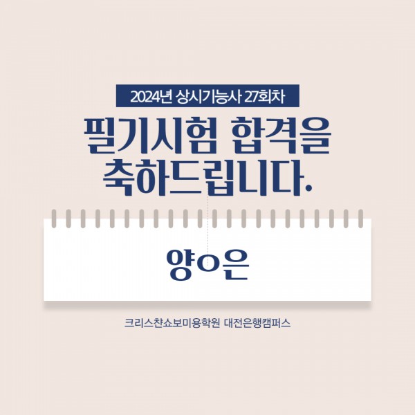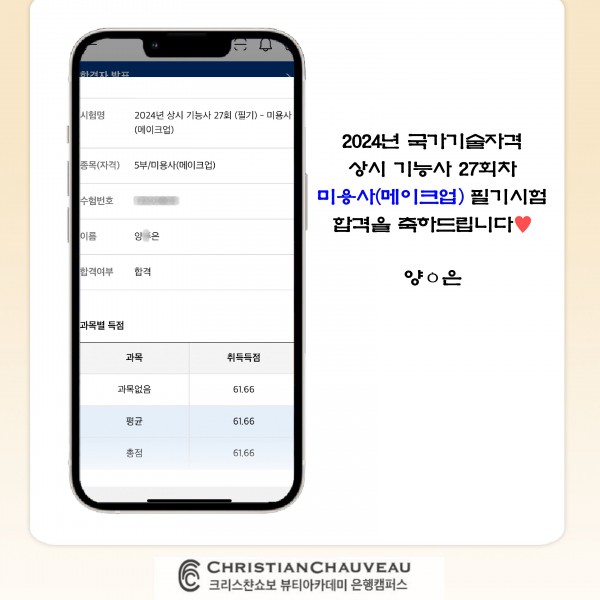 미용사(메이크업) 필기시험 합격을 축하드립니다