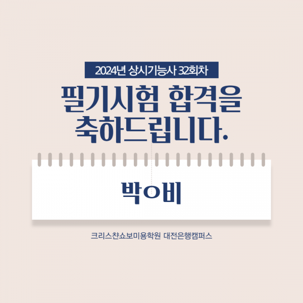 미용사(피부) 필기시험 합격을 축하드립니다.