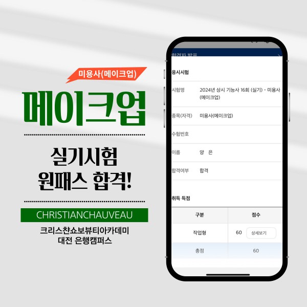 미용사(메이크업) 실기시험 합격을 축하드립니다.