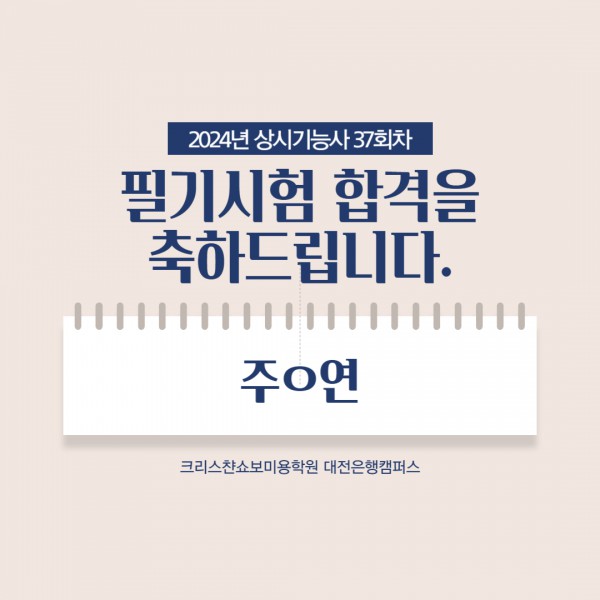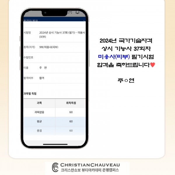 미용사(피부) 필기시험 합격을 축하드립니다.