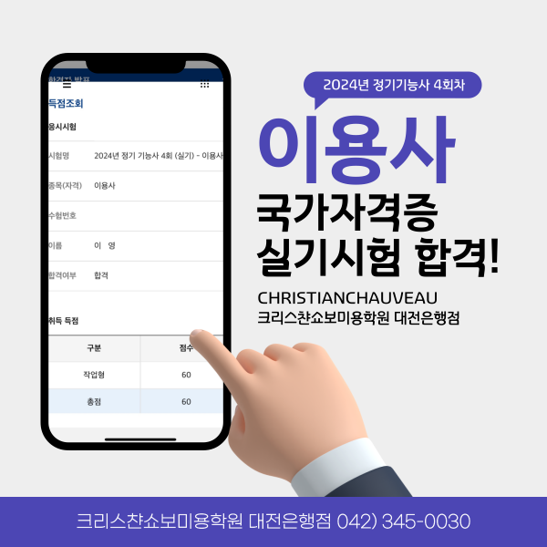이용사 실기시험 합격을 축하드립니다.