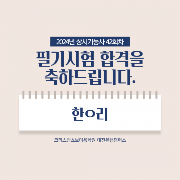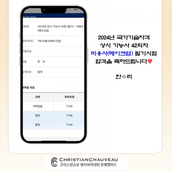 미용사(메이크업) 필기시험 합격을 축하드립니다.