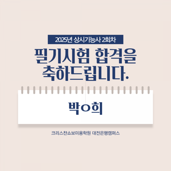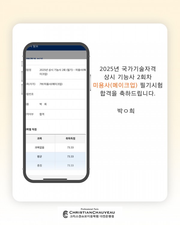 미용사(메이크업) 필기시험 합격을 축하드립니다.