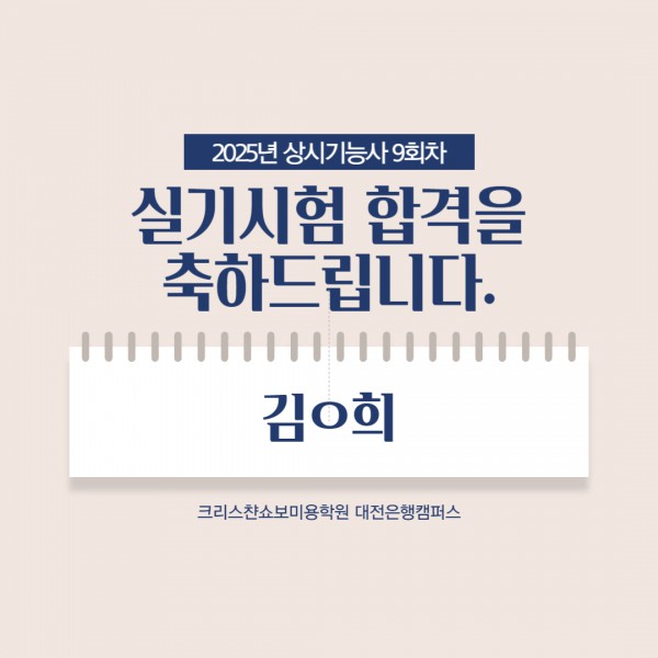 미용사(피부) 실기시험 합격을 축하드립니다.