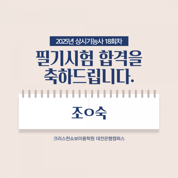 미용사(일반) 필기시험 합격을 축하드립니다.