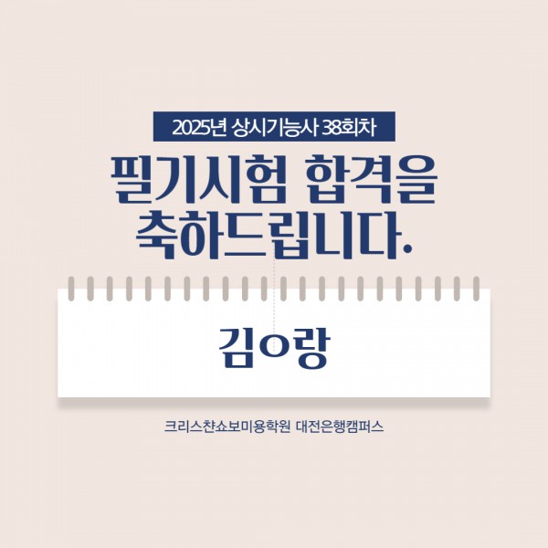 미용사(네일) 필기시험 합격을 축하드립니다.