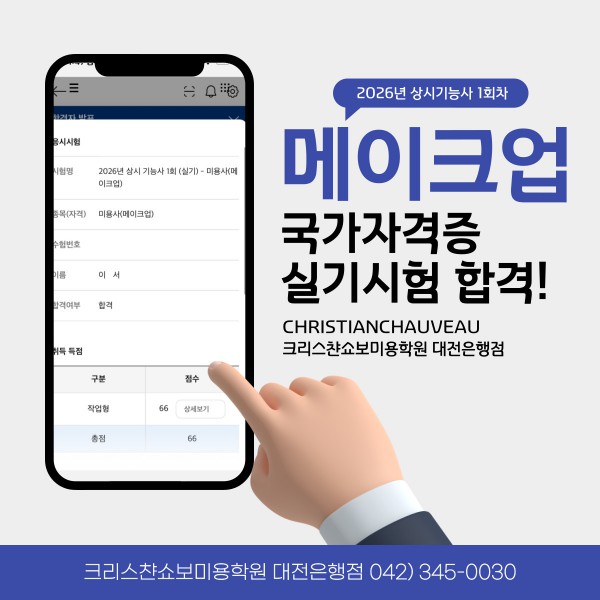 미용사(메이크업) 실기시험 합격을 축하드립니다.