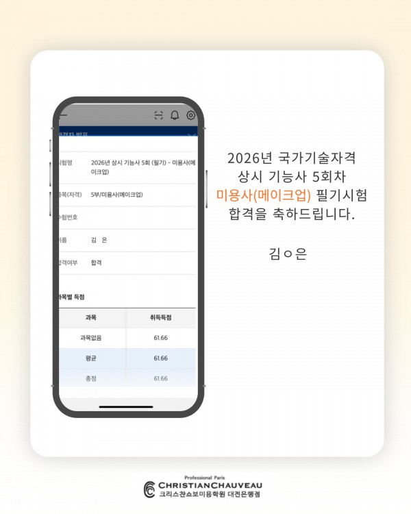 미용사(메이크업) 필기시험 합격을 축하드립니다.