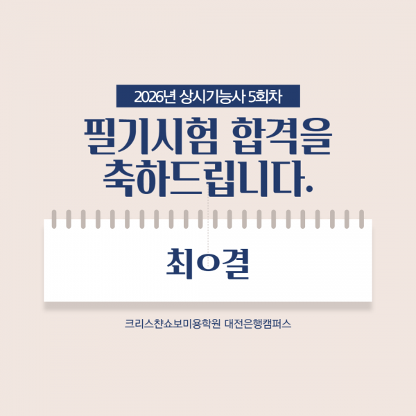 미용사(메이크업) 필기시험 합격을 축하드립니다.