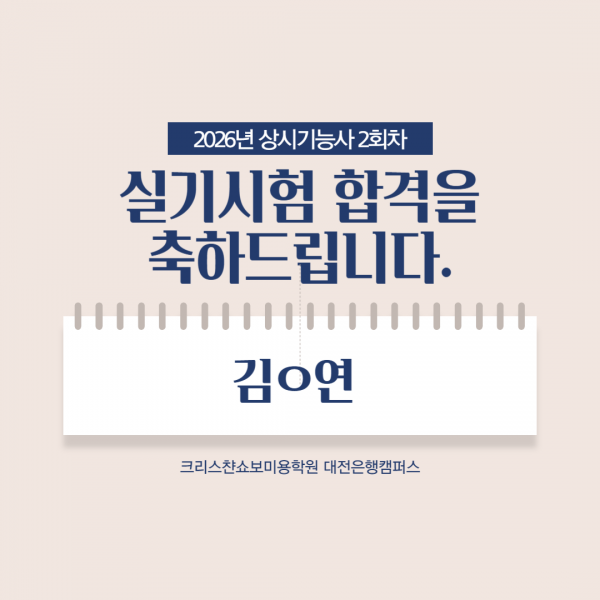 미용사(일반) 실기시험 합격을 축하드립니다.
