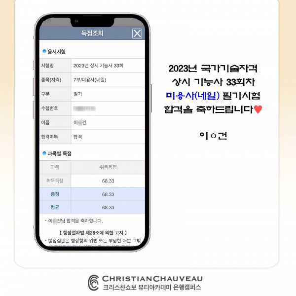 미용사(네일) 필기시험 합격을 축하드립니다.