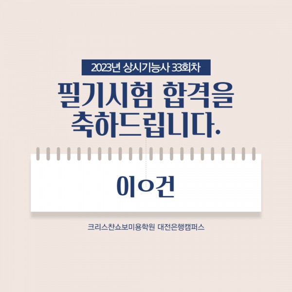 2023년 상시33회차 필기시험 합격을 축하드립니다.