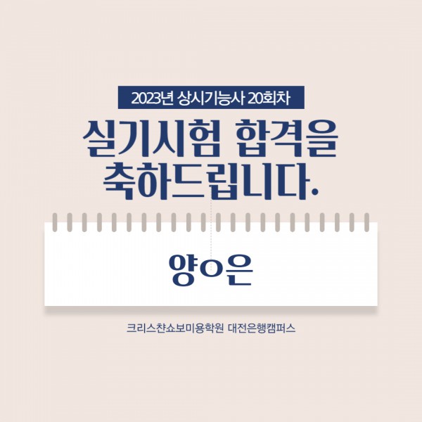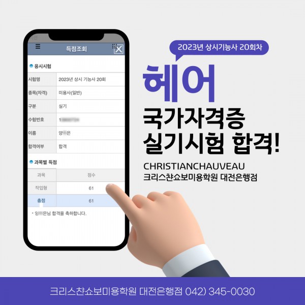 미용사(일반) 실기시험 합격을 축하드립니다.