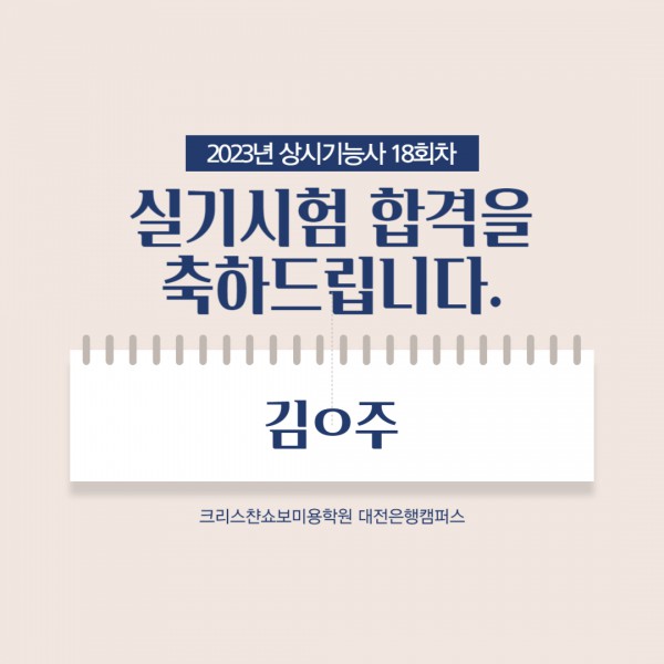미용사(일반) 실기시험 합격을 축하드립니다.
