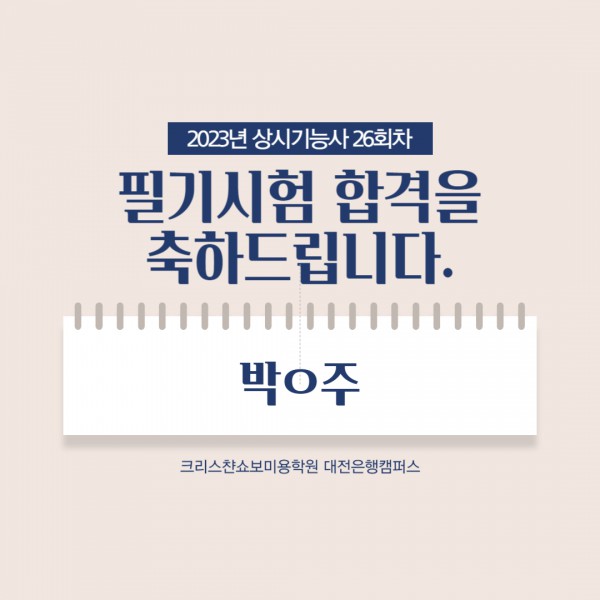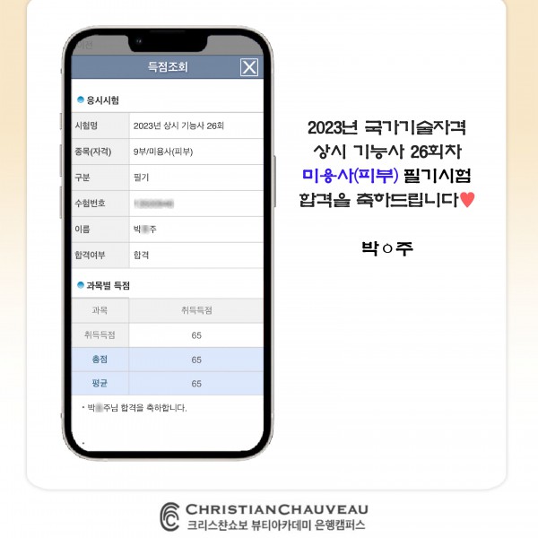 미용사(피부) 필기시험 합격을 축하드립니다.