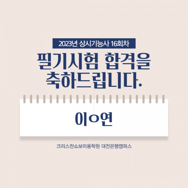 미용사(일반) 필기시험 합격을 축하드립니다.