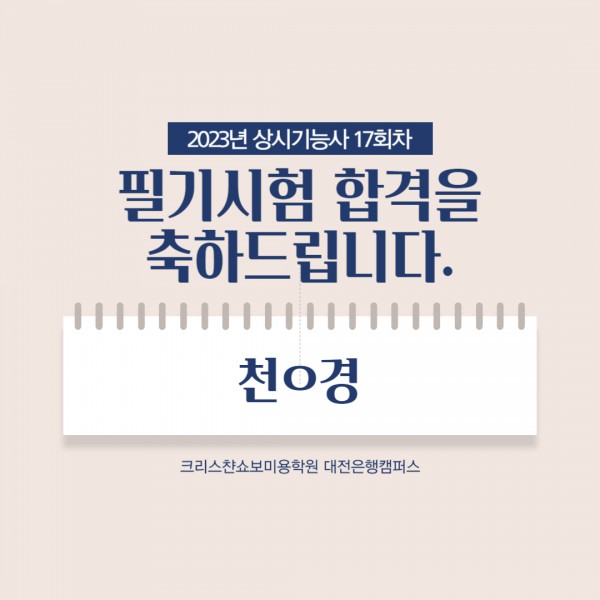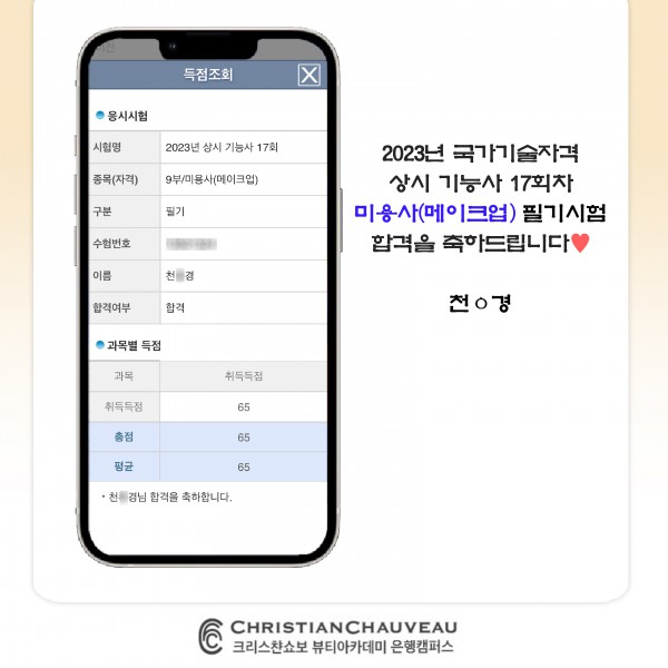 미용사(메이크업) 필기시험 합격을 축하드립니다.