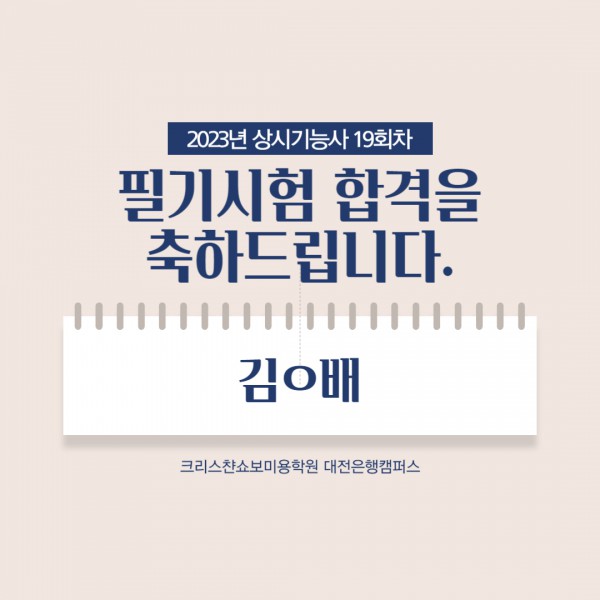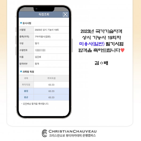 미용사(일반) 필기시험 합격을 축하드립니다.