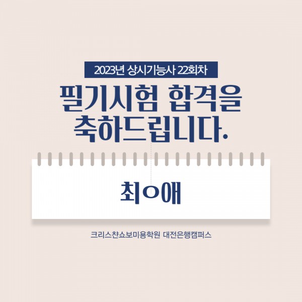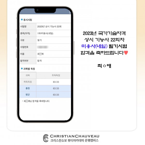 미용사(네일) 필기시험 합격을 축하드립니다.