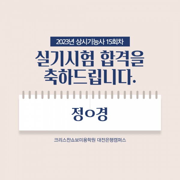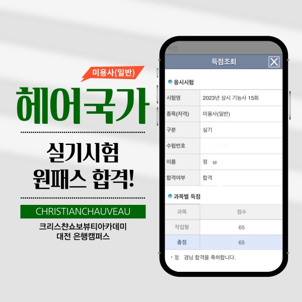 미용사(일반) 실기시험 합격을 축하드립니다.