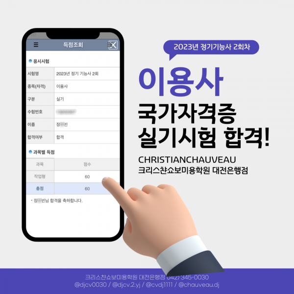 이용사 실기시헙 합격을 축하드립니다.