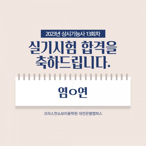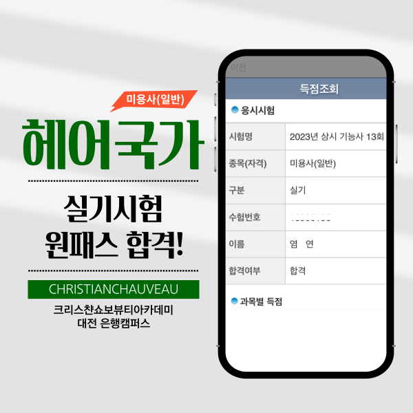 미용사(일반) 실기시험 합격을 축하드립니다.