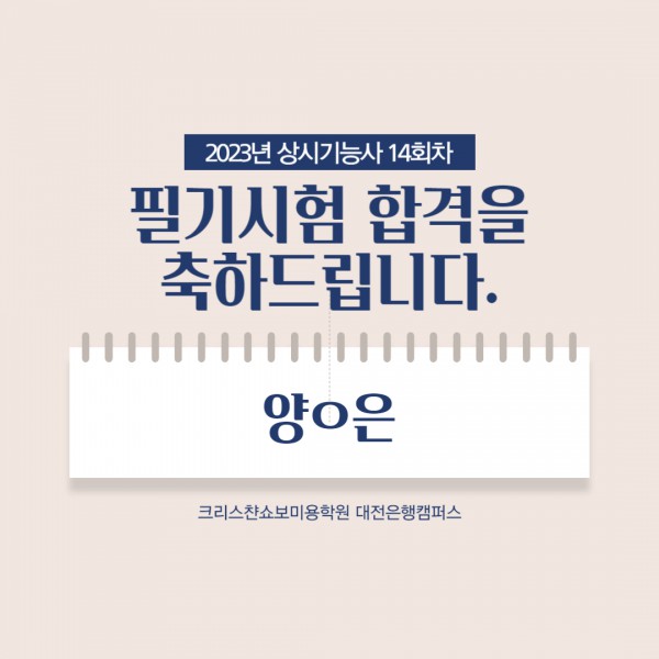 미용사(일반) 필기시험 합격을 축하드립니다.