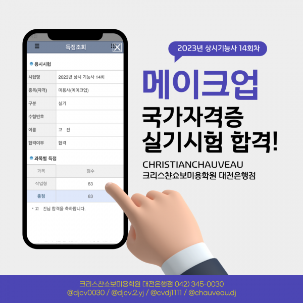 미용사(메이크업) 실기시험 합격을 축하드립니다.