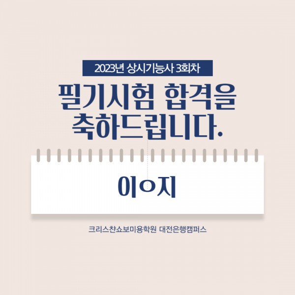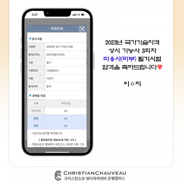 미용사(피부) 필기시험 합격을 축하드립니다.