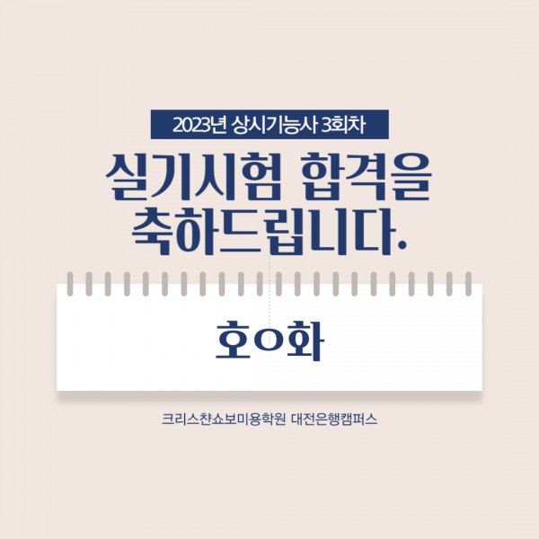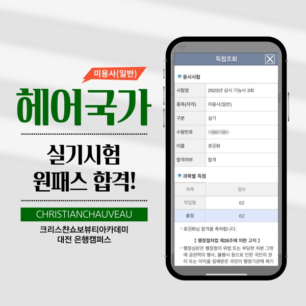 미용사(일반) 실기시험 합격을 축하드립니다.