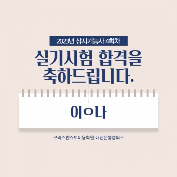 미용사(네일) 실기시험 합격을 축하드립니다.