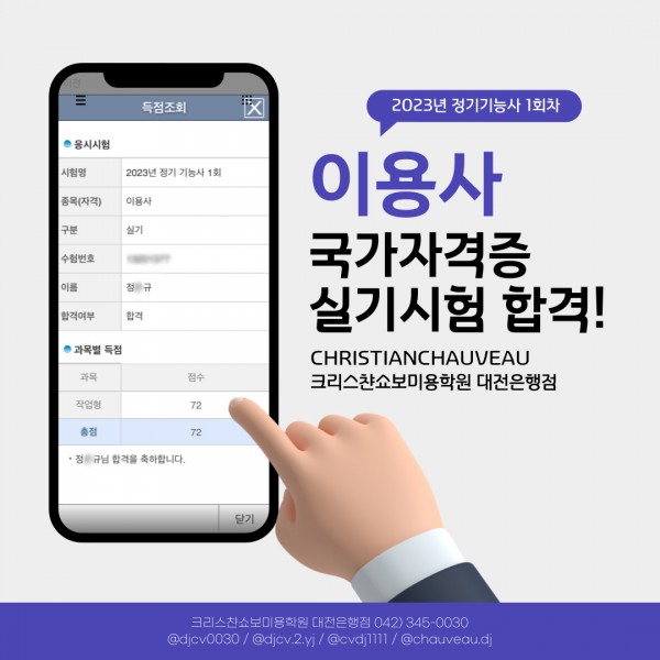 이용사 실기시험 합격을 축하드립니다.