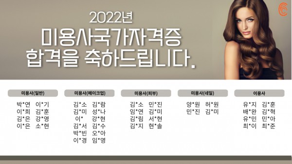 2022년 이·미용사 국가자격증 합격을 축하드립니다.